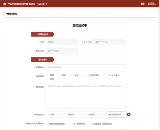 全国人社政务服务平台档案查询详情