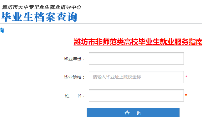 一是在“潍坊市人力资源和社会保障局”官网上点击“毕业生档案查询”栏目,输入毕业院校和姓名进行查询。