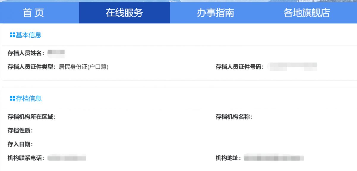 4、即可查看自己的档案存放区域、机构名称、联系电话及具体地址。