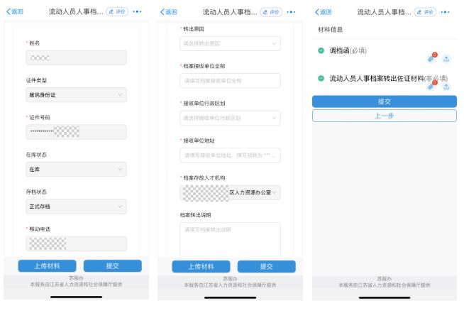 ②进入服务,按要求填写信息,上传调档案等材料,点击“提交”完成申请。