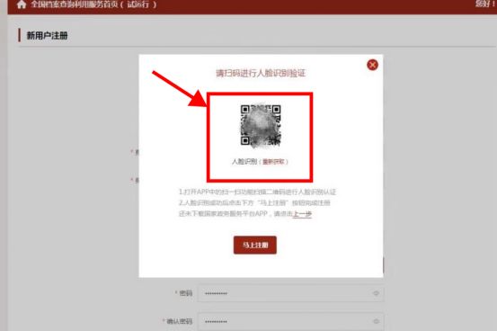 2.点击“下一步”,打开手机“国家政务服务平台”APP,点击“扫一扫”,扫描“人脸识别”二维码,进行人脸识别操作。