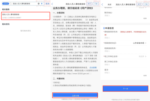 工作单位有档案接收权、想要转移档案的流动人员还可以在“爱山东”APP、微信小程序办理“流动人员人事档案接收”,开具《流动人员人事档案调函》(简称调档函)后,再办理“流动人员人事档案转出”。