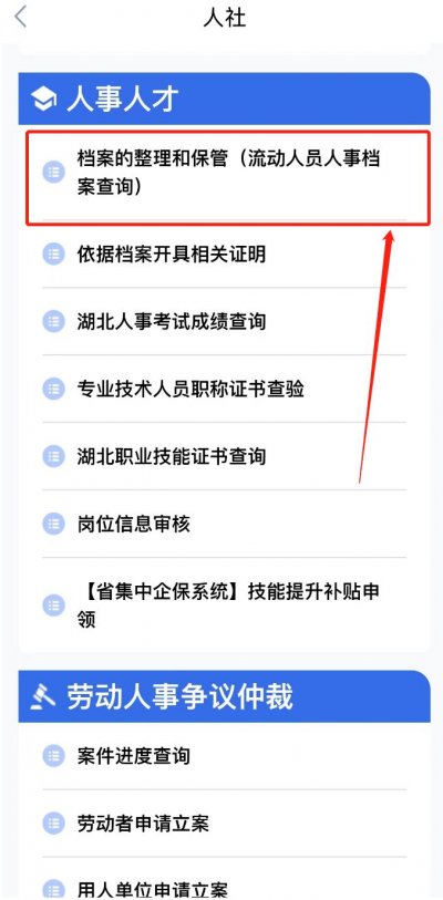 下载并打开“鄂汇办”APP,在“人社”——“档案的整理和保管(流动人员人事档案查询)”可以查询到档案在哪里。