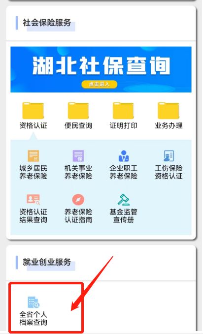 打开支付宝搜索“湖北智慧人社”,进入“全省个人档案查询”后授权查询。