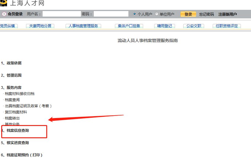 打开“上海人才网”官网,然后进入首页点击“人才档案管理服务”,然后进入点击“档案信息查询”,然后进入输入姓名和身份号码即可查询。