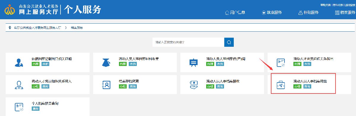 3、选择“档案服务”,点击“流动人员人事档案转出”,提交相关材料。
