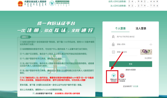 方法二:可以通过点击“蒙速办App扫码登录选项”(上图所示)进行扫码登录。