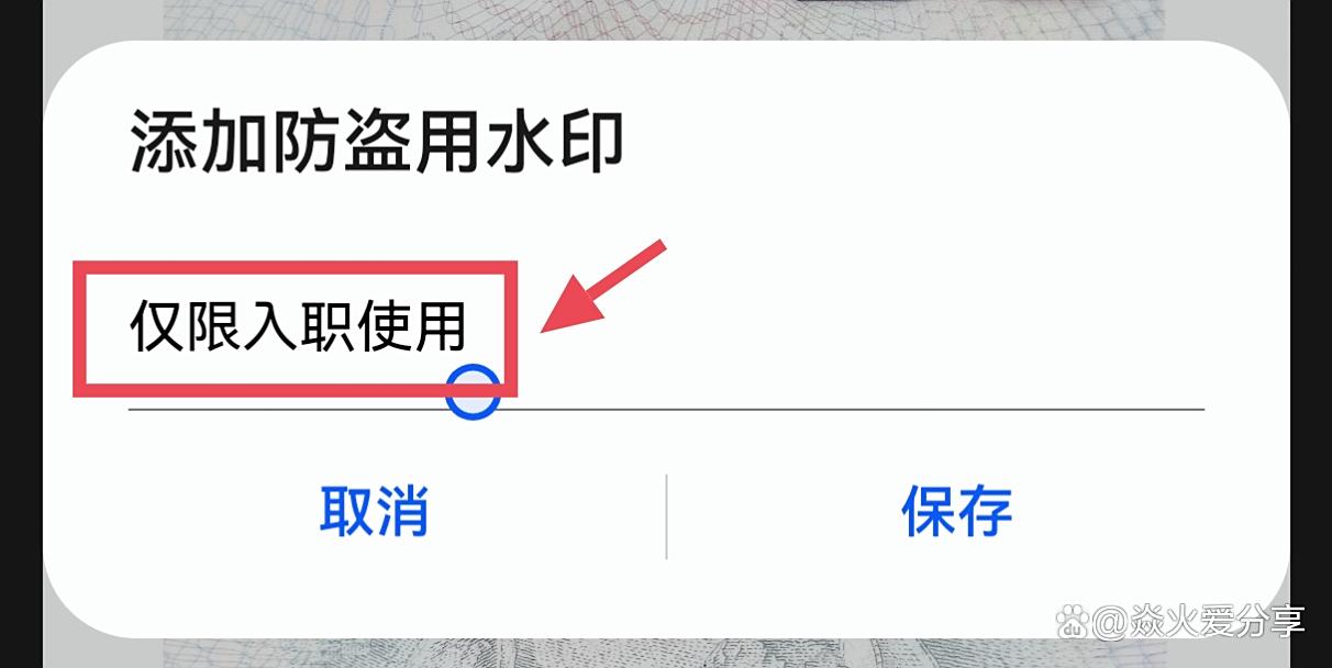 我把它放大一点来看,你们看,发现这一行小字了吗:“仅限于入职使用”,说明水印就添加成功了。