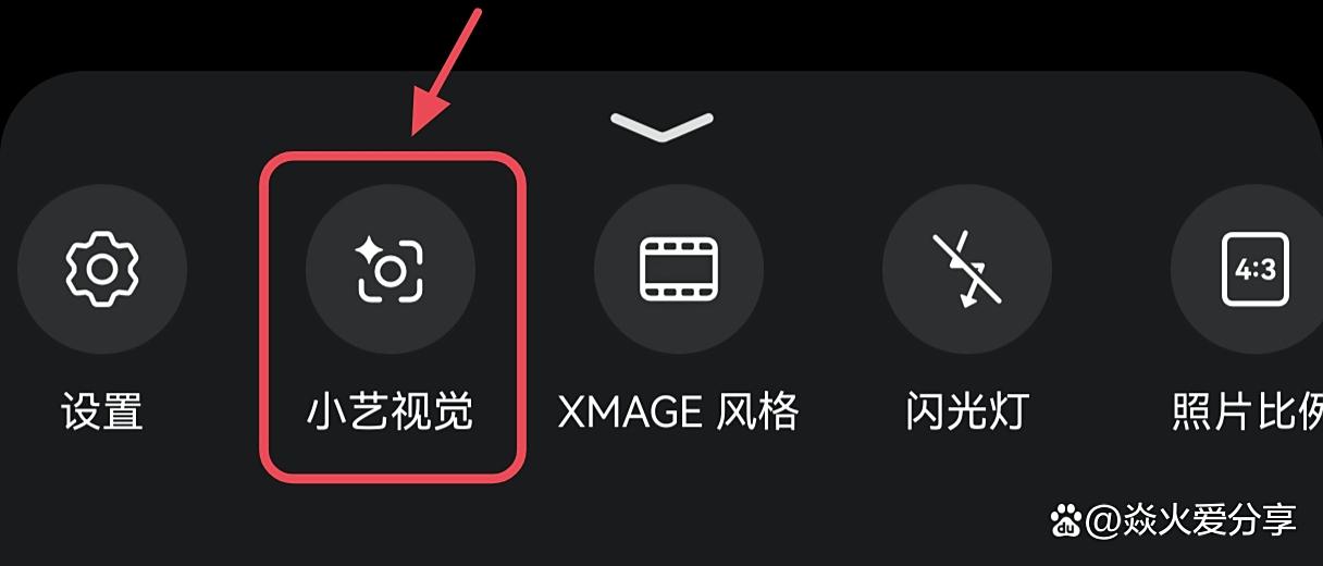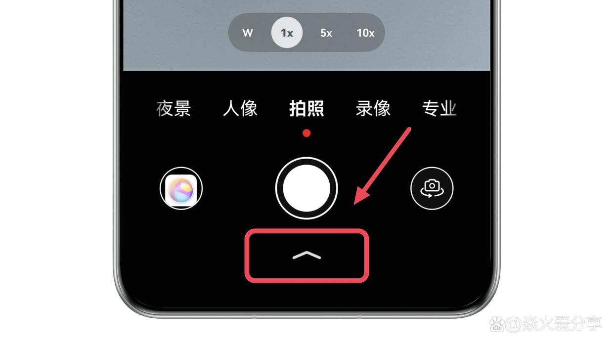 如果你使用的是华为新款手机,比如搭载鸿蒙5.0系统,打开相机,大家看最底部,这里有一个向上的小箭头,点击它。