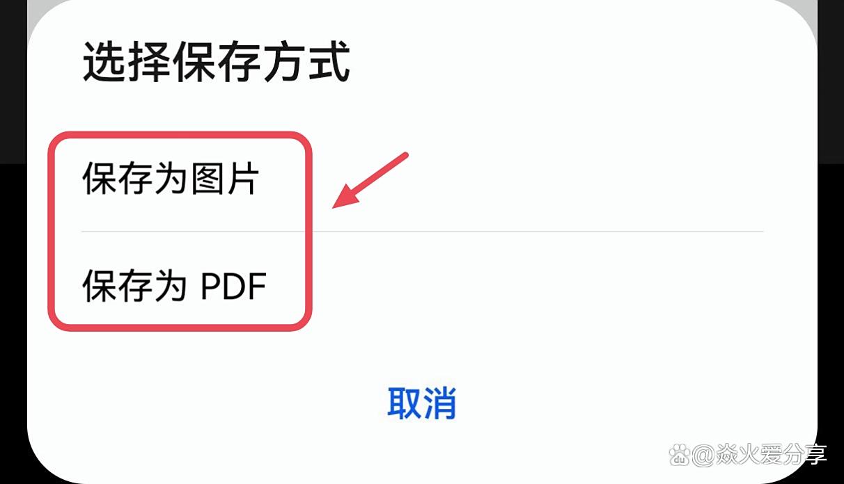 再选择右上角的保存,可以保存为图片或者PDF格式,直接放到手机里来使用了。