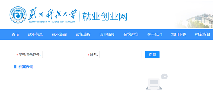 苏州科技大学毕业生个人档案查询系统官网入口,点击进入>> https://usts.91job.org.cn/sub-station/fileWhereabouts?xxdm=10332 登陆苏州科技大学官网-招生就业-就业指导-就业创业网-档案查询