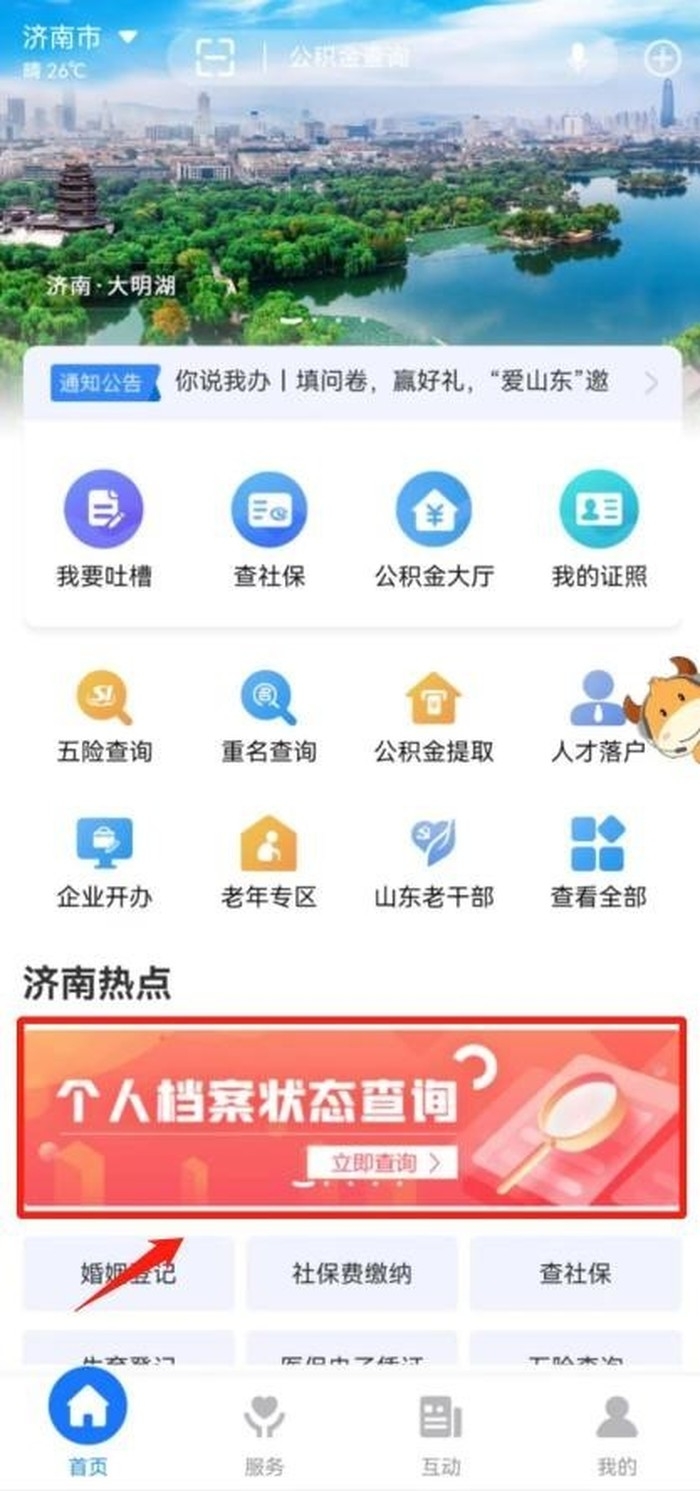 如果你想将个人存档转换为单位存档,还可以登录“爱山东”济南分厅,首页搜索办理“档案存档变更”业务。