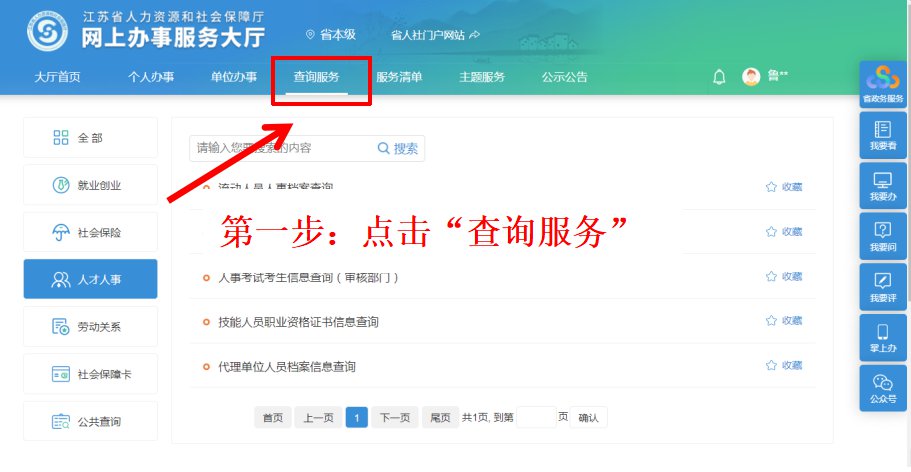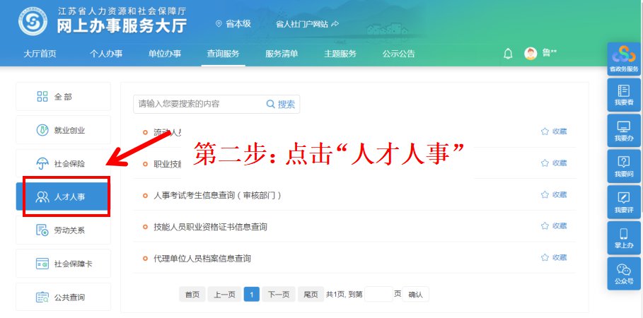 查询入口:江苏人社网办大厅(https://rs.jshrss.jiangsu.gov.cn/index/)