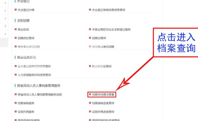 步骤五:在“个人服务”页面点击“档案存档情况查看”